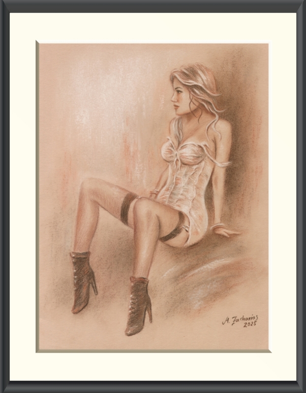 Seductive Mistress Pastel drawing, ORIGINAL sold